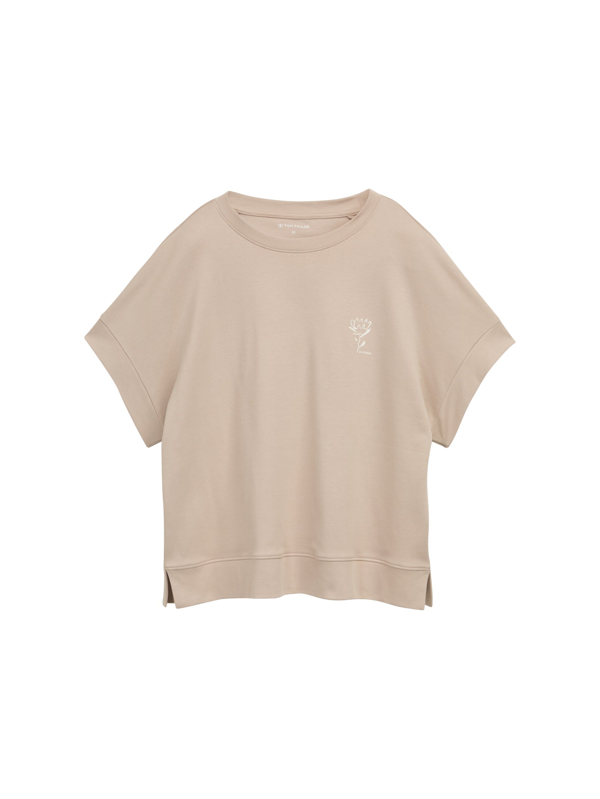 * Locker geschnittenes T-Shirt aus Baumwolle mit Blumen-Print auf der Brust und kurzen Seitenschlitzen