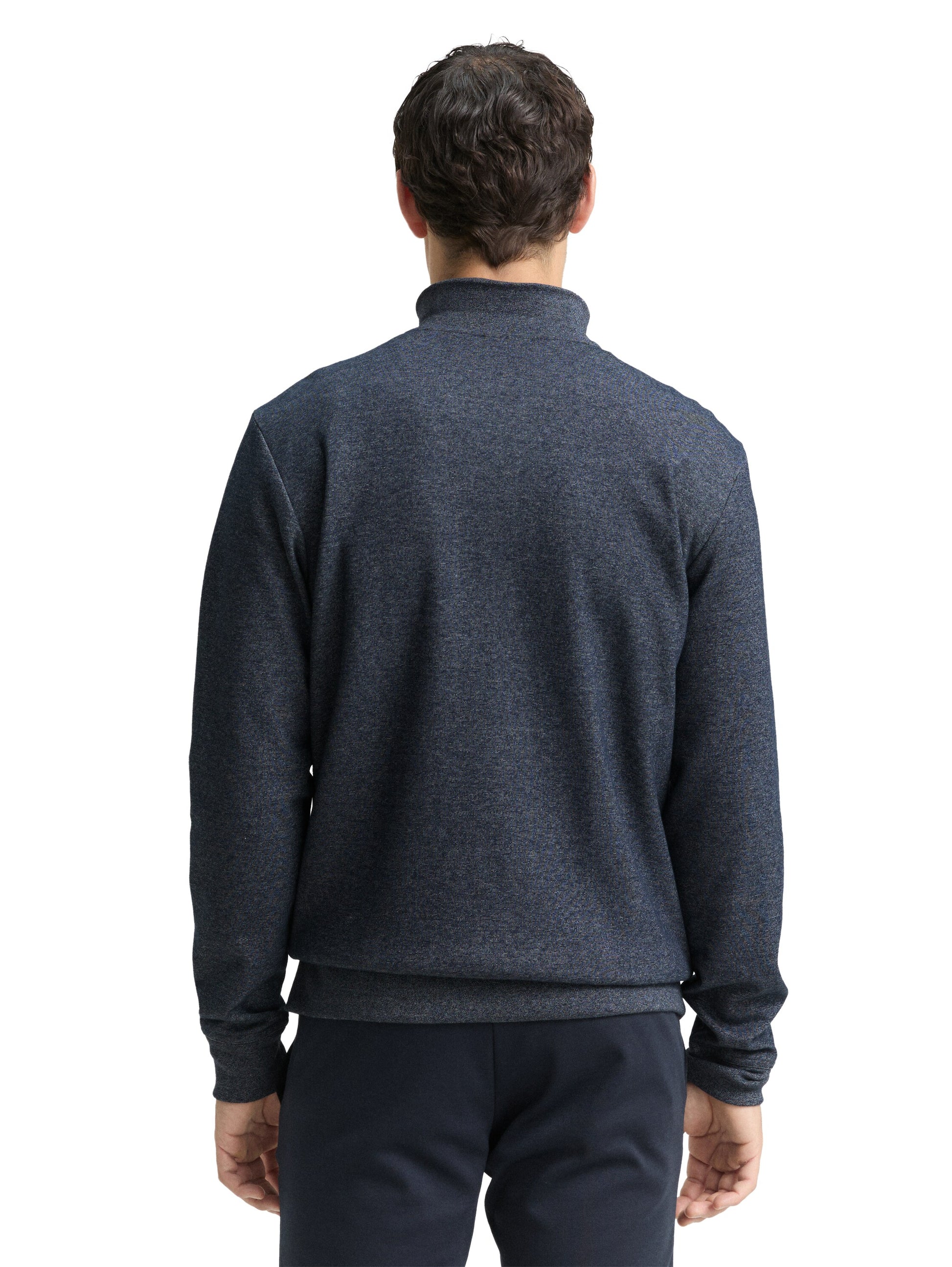 Melierte Sweatshirtjacke mit Stehkragen und Reißverschlusstaschen vorne. Mit Logo-Badge auf der Brust und Rippbündchen am Saum.
