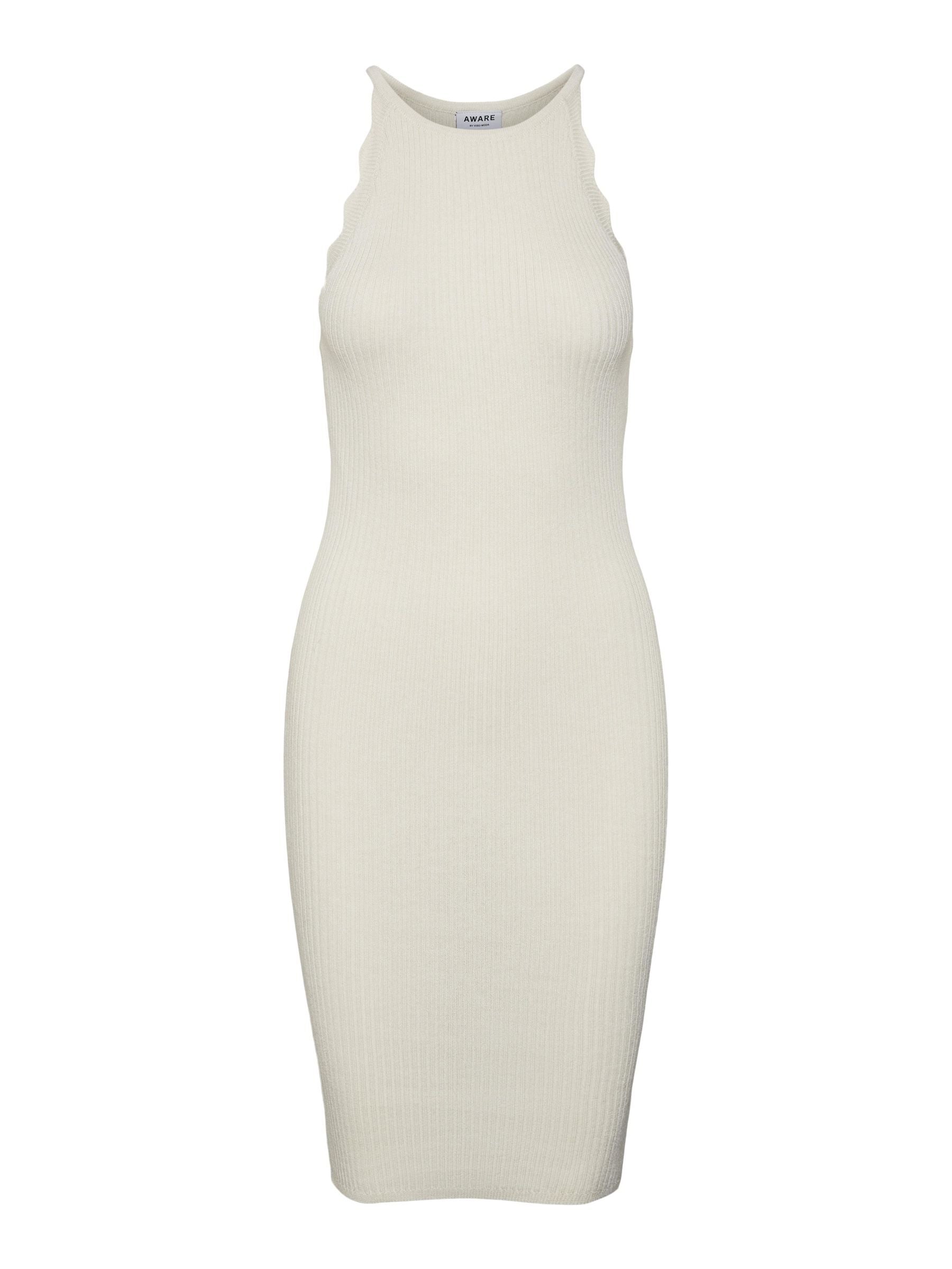 Ein Strickkleid kennt keine Grenzen, wenn es um Komfort geht. Dieser Style ist ein klassisches Must-have für kältere Tage. Style es mit einer Strumpfhose und langen Chunky Stiefeln zu einem modernen Alltagslook. Und mit ein paar coolen Accessoires verwandelst du dieses Kleid schnell in einen festlichen Look.AWARE ist eine einzigartige Produktlinie von qualitativ hochwertigeren Kleidungsstücken, die mit den notwendigen bevorzugten, zertifizierten und Markenfasern hergestellt werden, die den Verbrauch natürlicher Ressourcen während der Produktion reduzieren. - Produkttyp : Strickkleid - Hals : Neckholder - Ärmel : Ohne Ärmel - Länge/Größe : Knöchellang - Passform : Normal geschnitten