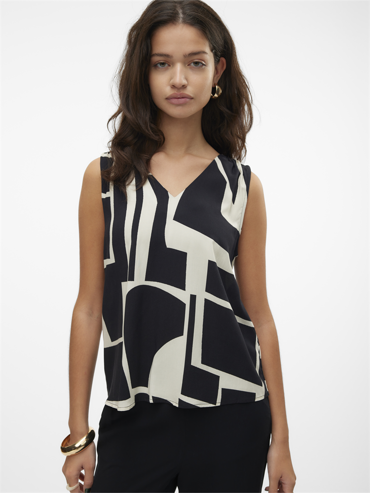 VMEASY JOY S/L V-NECK TOP WVN GA - 10301759