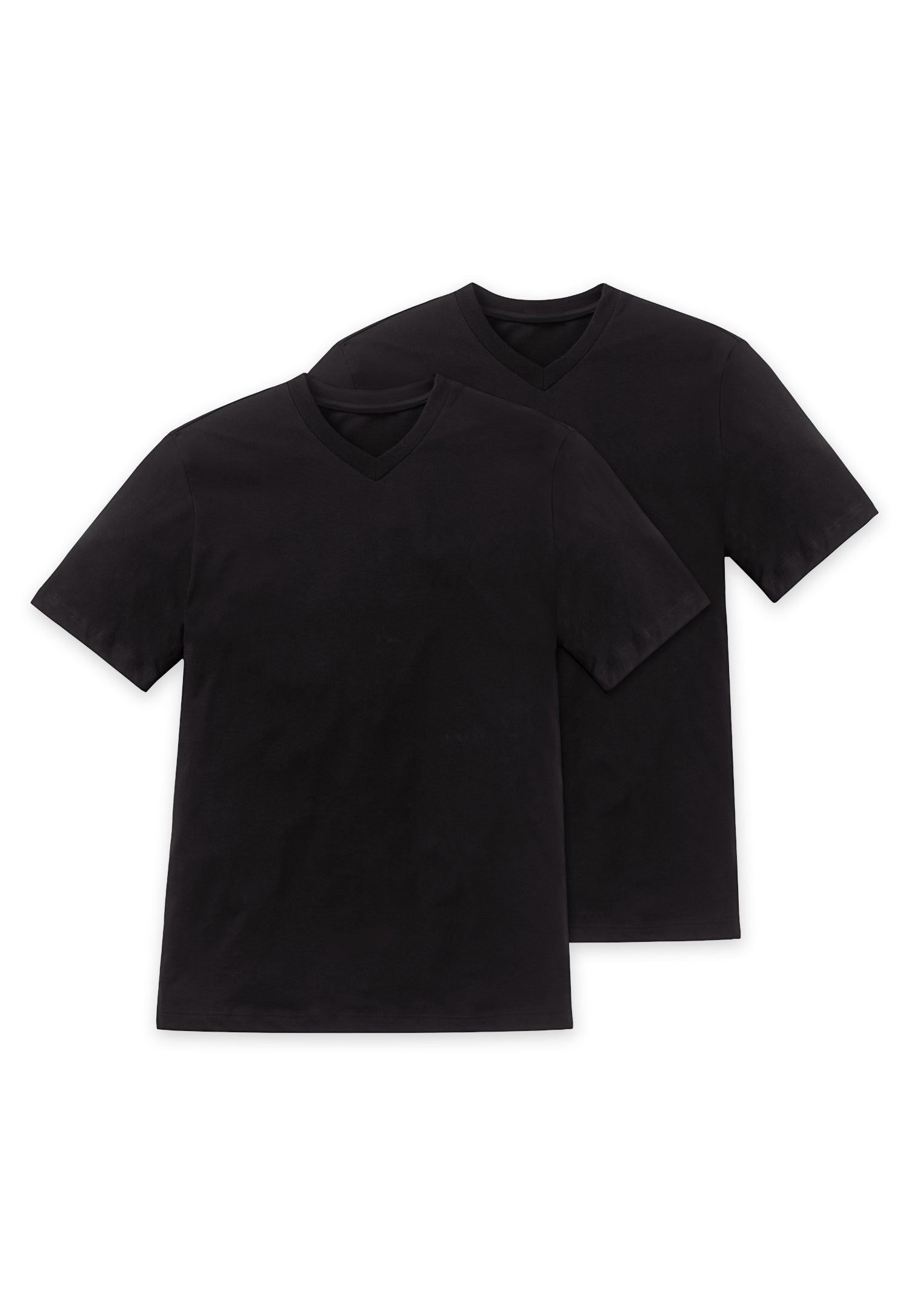 schwarze American T-Shirts für Herren, aus der SCHIESSER-Serie Essentials, im praktischen Doppelpack, mit V-Ausschnitt, hochwertige Verarbeitung und hohe Formstabilität, aus 100% supergekämmter Baumwolle / OEKO-TEX® MADE IN GREEN (M24LHVTB0 Hohenstein HTTI), in angenehm weicher Single-Jersey-Qualität
