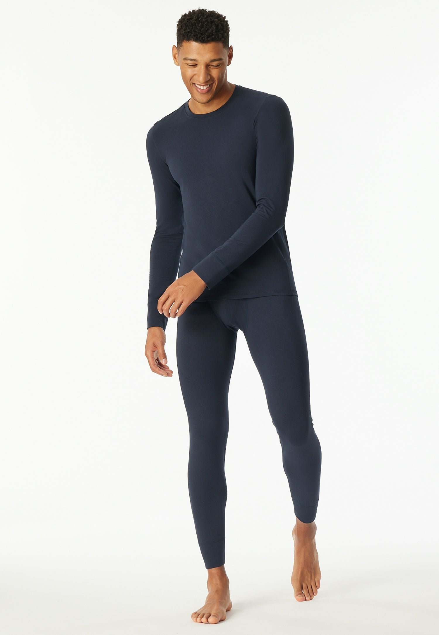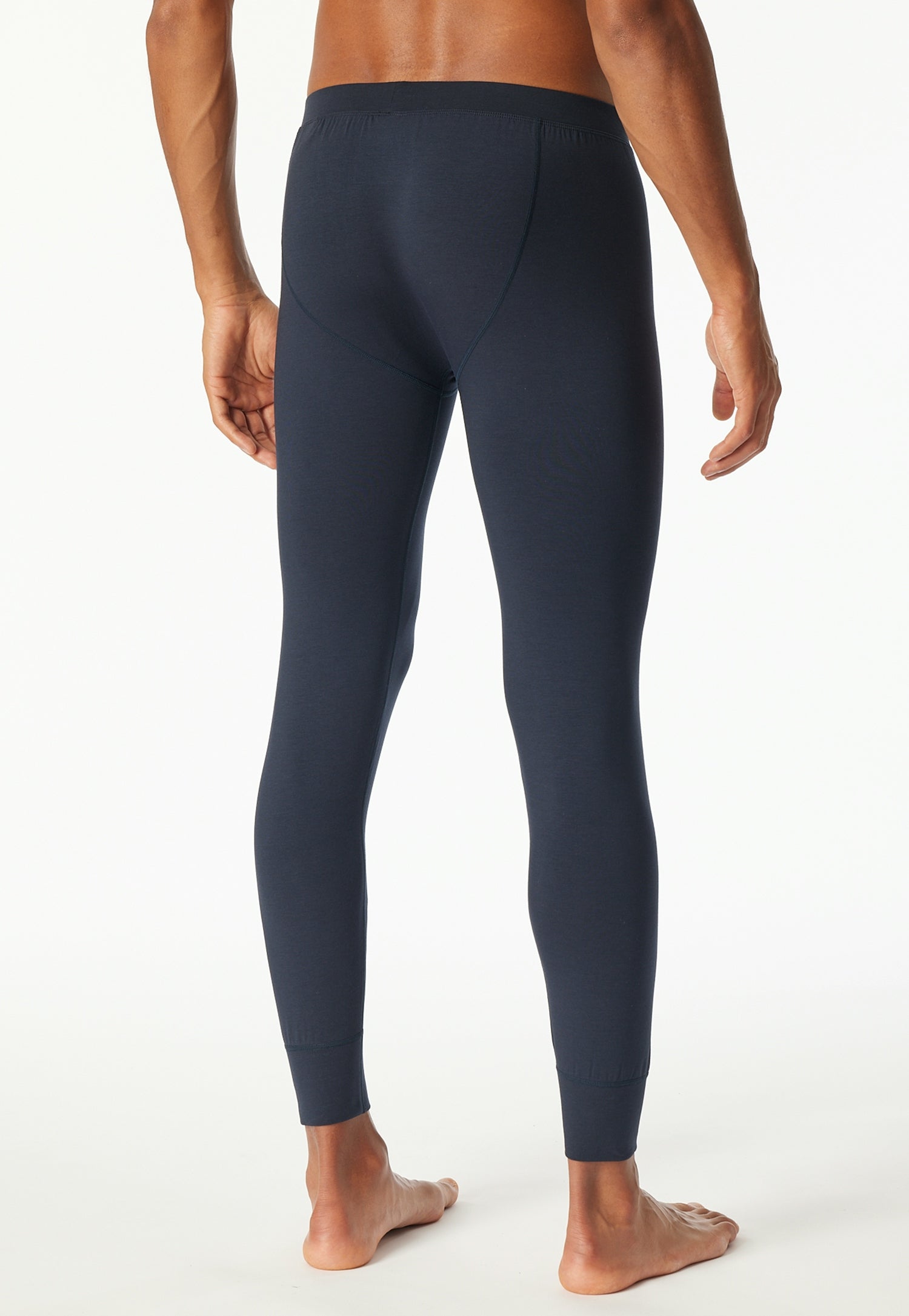 nachtblaue Herrenhose, aus der SCHIESSER Serie "Casual Warming", flache Nähte für hohen Tragekomfort, sportliche Schnittführung, unsere Models tragen Größe 50/M, in elastischer, wärmender Single-Jersey-Qualität