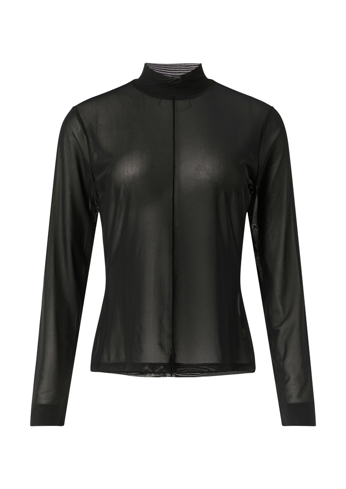 Setzen Sie auf zeitlose Eleganz mit diesem langärmligen T-Shirt. Der feminine Stehkragen verleiht Ihrem Look eine subtile Raffinesse. Aus hochwertigem Material gefertigt, schmiegt es sich angenehm an Ihre Haut und bietet vielseitige Styling-Möglichkeiten. Kombinieren Sie es mit einer Statement-Kette für einen Hauch von Glamour oder layern Sie es unter einem Blazer für einen gepflegten Business-Look.