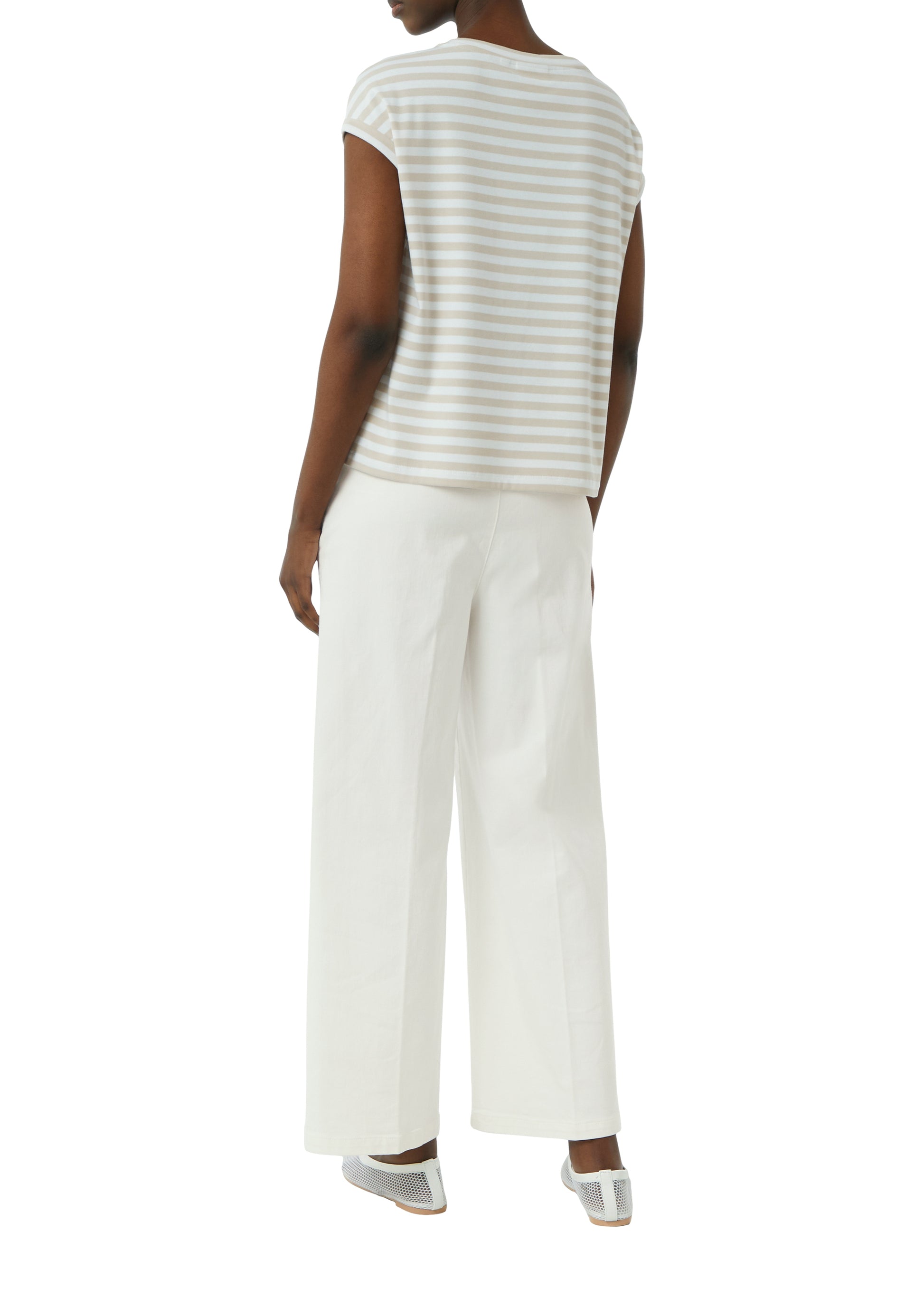 Gestreiftes T-Shirt mit überschnittenen Schultern und Printdetail | 2163897.03G1.32