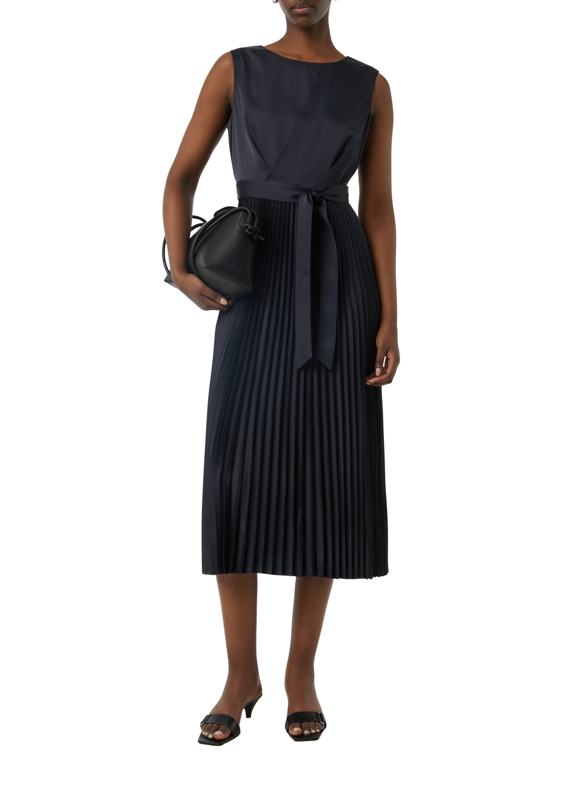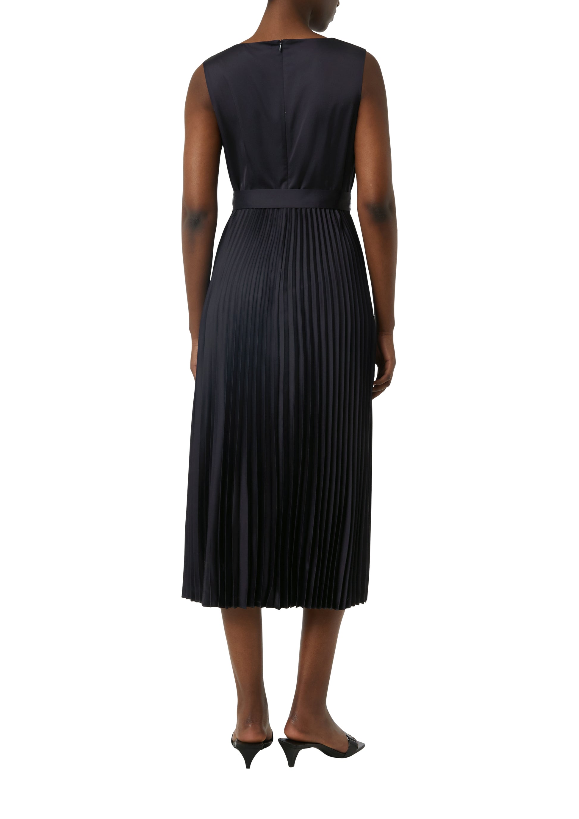 Langes Satinkleid mit plissiertem Rockteil | 2165799.5976.32