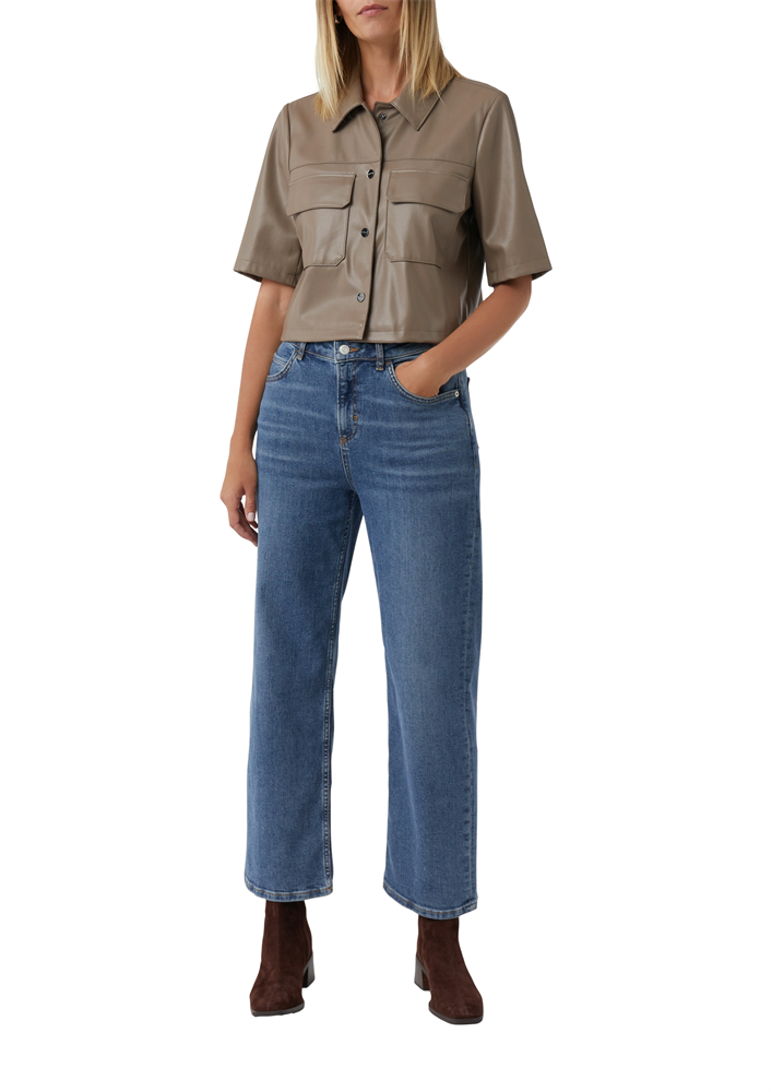 Verleihen Sie Ihrem Look einen edgy Touch mit dieser kurzen Jacke in Lederoptik. Die boxy Passform und der Hemdkragen sorgen für einen modischen Akzent, während die halblangen Ärmel feminine Eleganz ausstrahlen. Aufgesetzte Taschen und Druckknöpfe vereinen Funktionalität mit Stil. Perfekt für casual und festliche Anlässe – diese hochwertige Jacke ist Ihr vielseitiger Begleiter mit fließender Silhouette und leichter Fütterung.