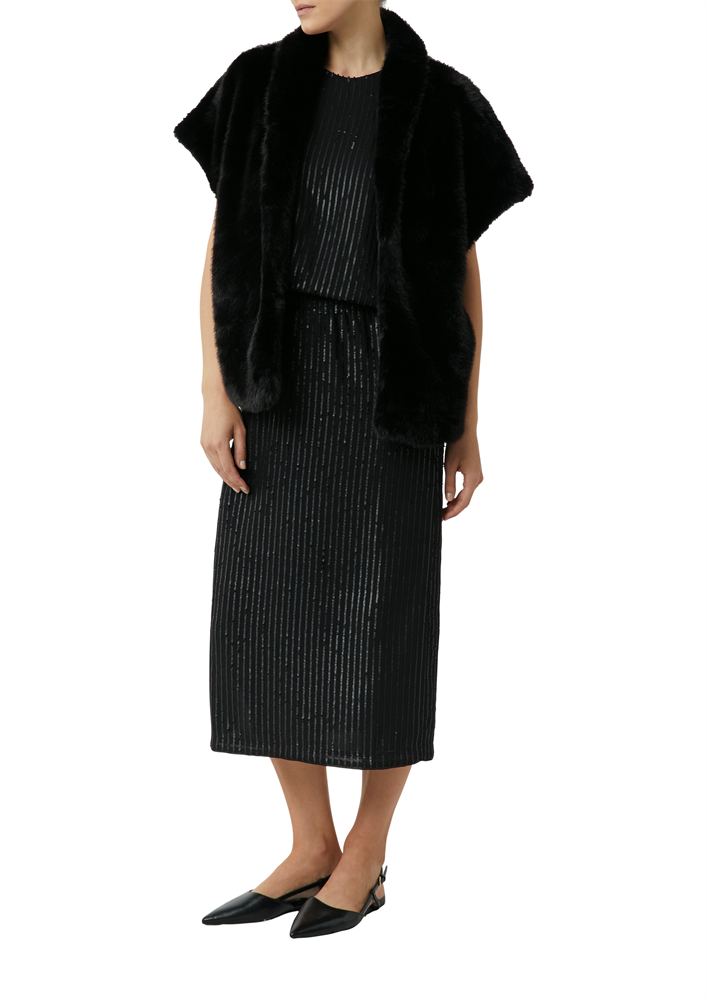 Weite ärmellose Weste aus Webpelz | 2174010.9999.XS