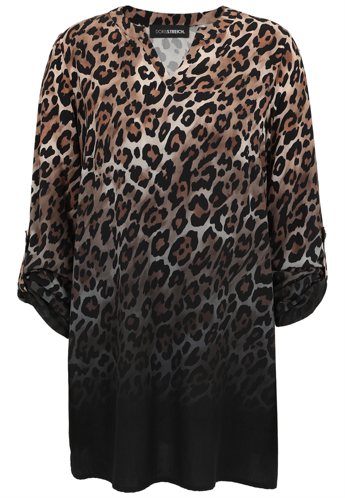 Diese edle Bluse von Doris Streich mit ihrem Leo-Bordüren-Print im Farbablauf ist aus softer Viskose gefertigt. Die lässige A-Linie mit Falte im Rückenteil umspielt locker Ihre Figur. Die langen Ärmel lassen sich durch die Laschen variabel hochraffen oder