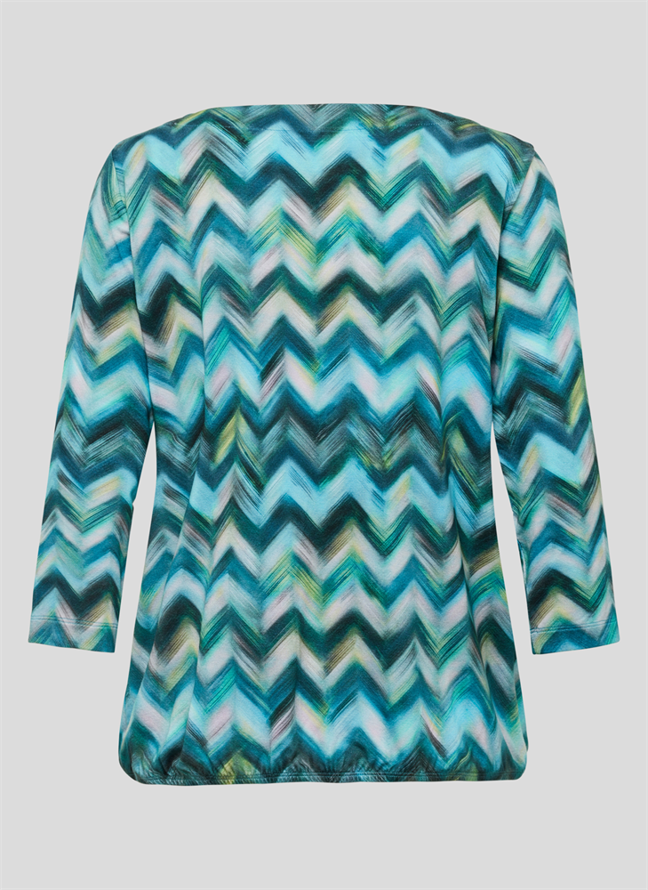 Das gerade geschnittene T-Shirt mit U-Boot-Ausschnitt und 3/4 Arm ist perfekt für die Herbstsaison geeignet. Der elastische Saum sorgt für eine optimale Passform, während der grafische Allover-Print das Shirt zu einem echten Blickfang macht. In der Farbe Petrol ist dieses Modell ein Must-Have für alle modebewussten Frauen.