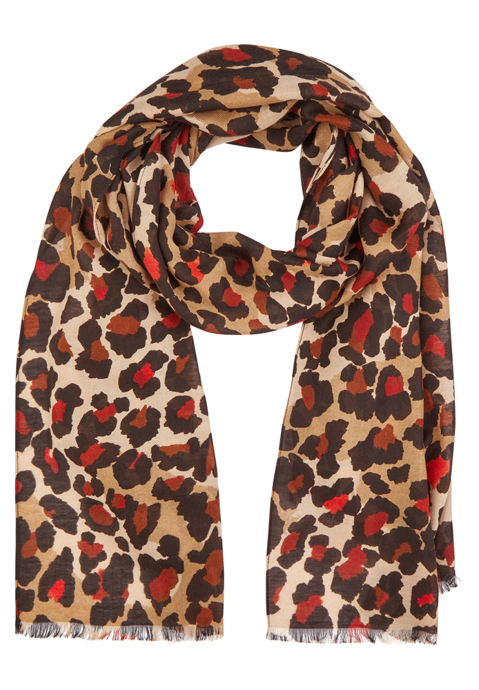 Dieser Schal mit aufregendem Leopardenmuster ist das perfekte Accessoire, um jedem Outfit eine Prise Eleganz und Abenteuer zu verleihen. Kombination aus warmen Brauntönen und leuchtendem Orange für vielseitige Styling-Optionen. Perfekt zum Tragen als Schal, Halstuch oder sogar als Gürtel.