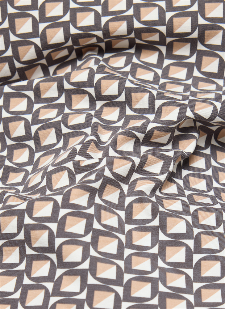 Dieses Shirt bringt durch das geometrische Muster Abwechslung in den Alltag. Der Rundhalsausschnitt und die 3/4-langen Ärmel sorgen für eine zeitlose Silhouette. Dank des elastischen Materials trägt sich das Modell angenehm und bleibt formstabil _ ideal zu schlichten Hosen, Jeans oder Röcken. Bequeme 3/4-Ärmel. Klassischer Rundhalsausschnitt. Elastisches Material für optimalen Sitz. Pflegeleicht und formstabil. Vielseitige Kombinationsmöglichkeiten.
