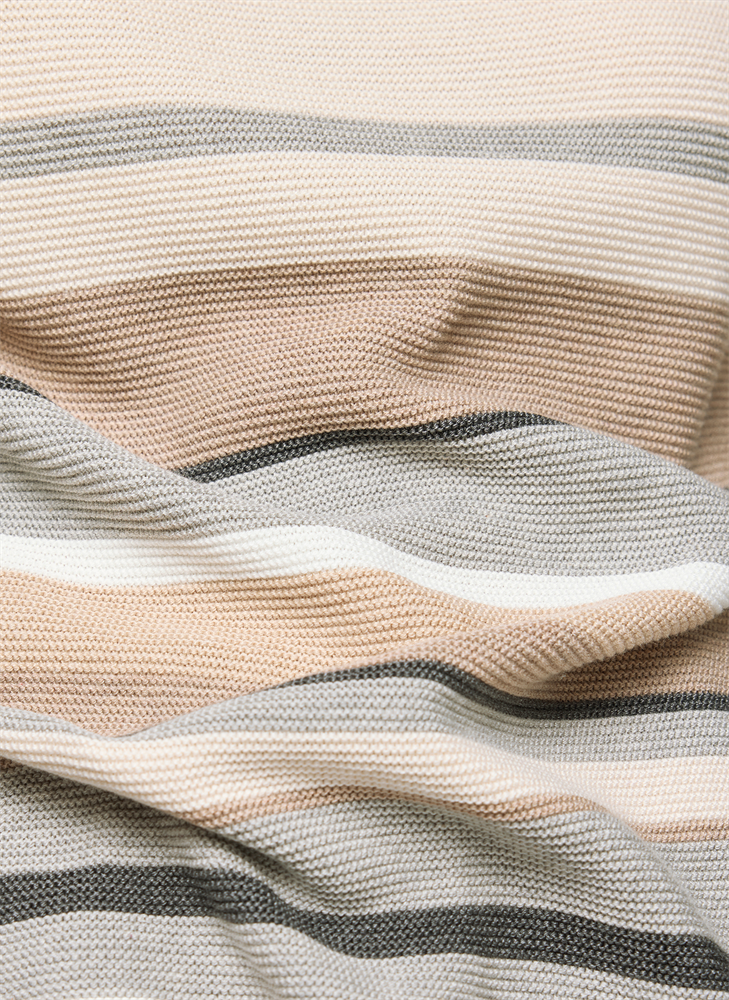 Dieser Pullover kombiniert klassischen Feinstrick mit einem modernen Streifendessin und feiner Struktur. Der kleine Stehkragen verleiht dem Design eine dezente Eleganz, während die weiche Materialmischung aus Baumwolle und Polyacryl für angenehmen Tragekomfort sorgt. Ideal zu kombinieren mit Jeans oder Stoffhosen _ ein vielseitiger Begleiter für die Übergangszeit. Kleiner Stehkragen. Weiche Feinstrickqualität. Gerader Schnitt. Strukturierte Streifenoptik. Angenehmes Tragegefühl durch Materialmix.