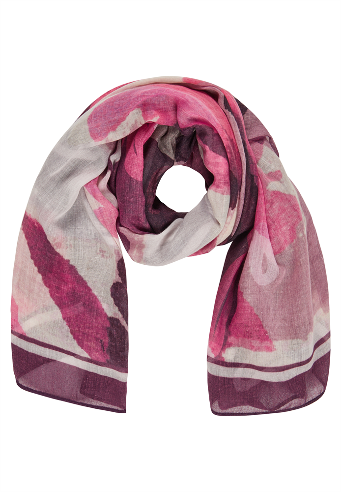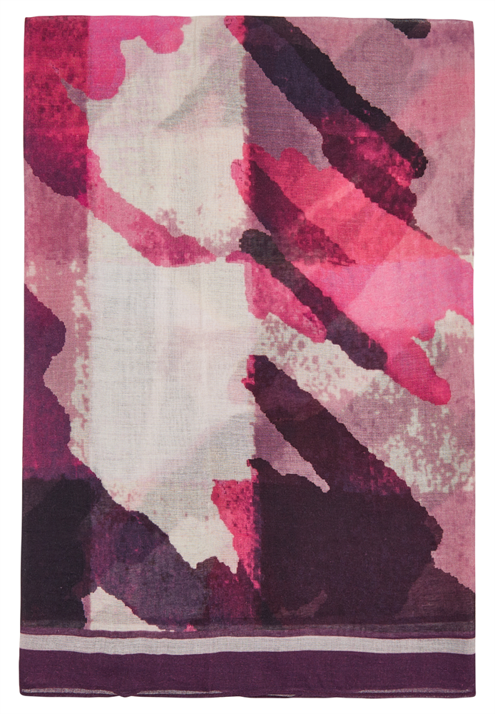Dieser leichte Schal punktet mit einem künstlerisch-abstrakten Allover-Print und einem schmalen Bordürenabschluss. Der weiche, transparente Stoff trägt sich angenehm auf der Haut und lässt sich vielseitig kombinieren _ ob zu Jacke, Mantel oder Pullover. Angenehm weicher Griff. Abstrakter Allover-Print. Dezente Bordüre. Pflegeleicht und schnelltrocknend.